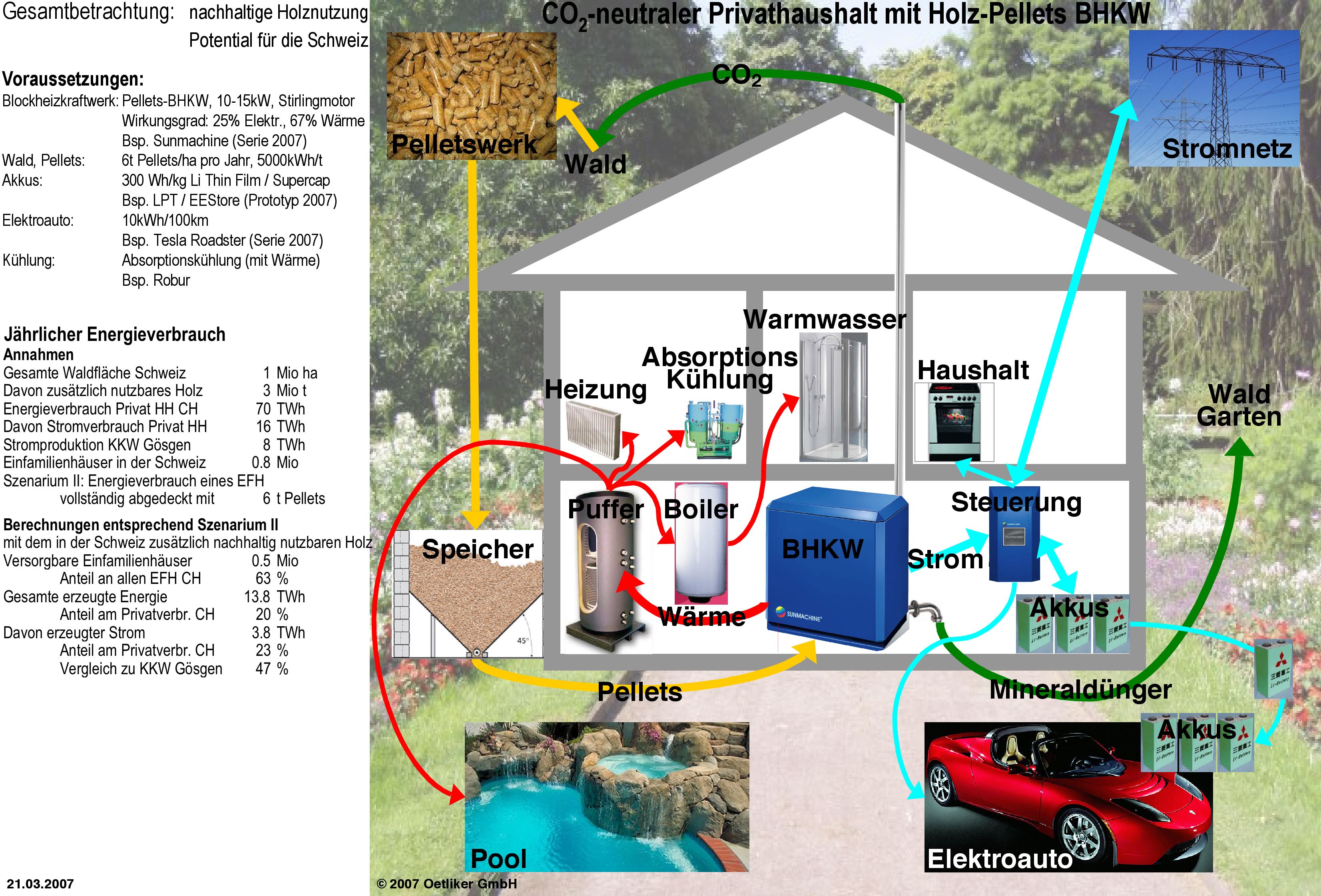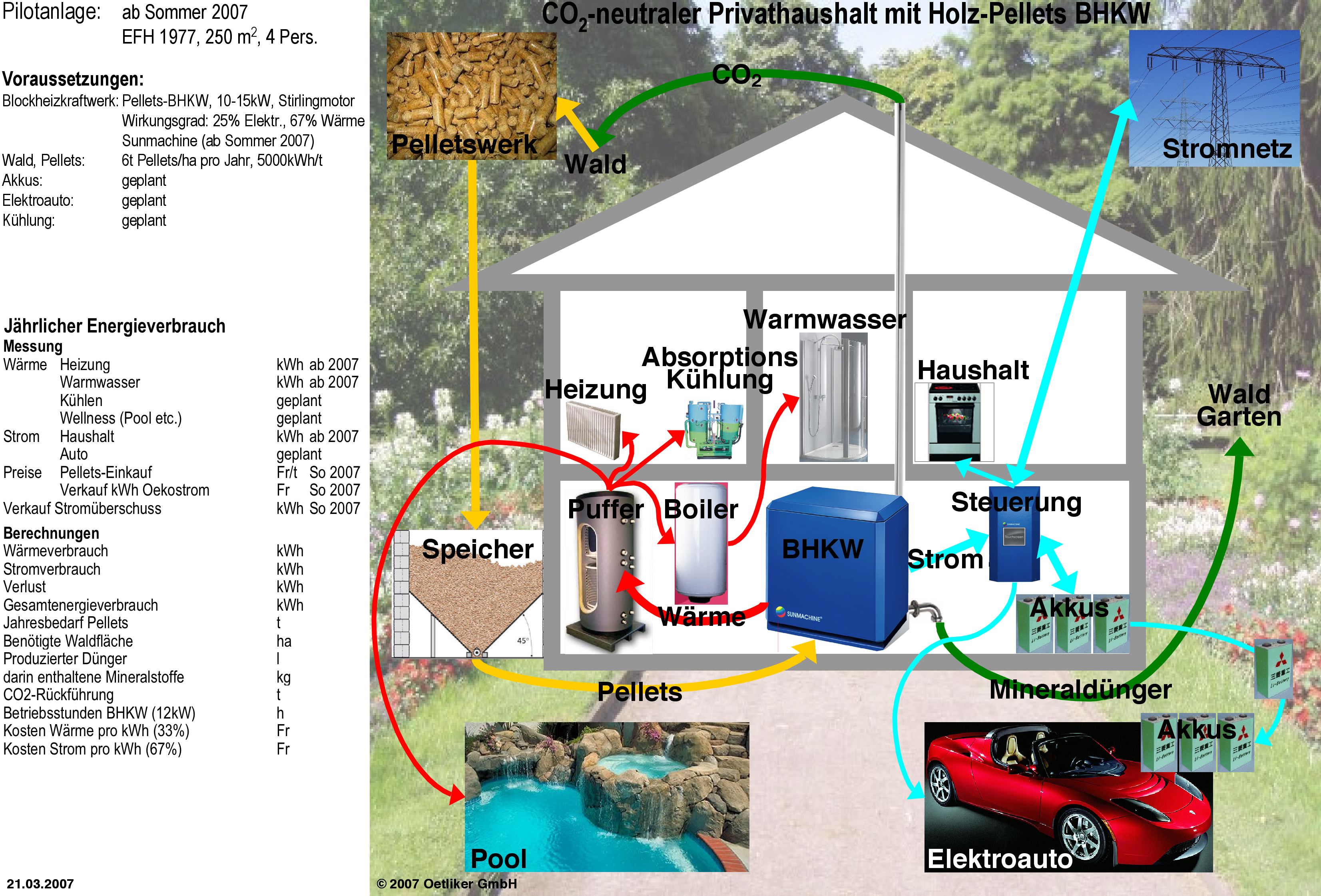 CO2-neutraler Privathaushalt mit Holz-Pellets BHKW